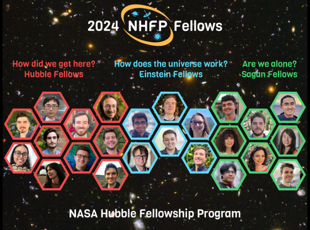 4月2日,美国宇航局(NASA)公布了今年入选美国宇航局哈勃学者计划(NASA Hubble Fellowship Program,NHFP)的名单(//hubblesite.org/contents/news-releases/2024/news-2024-016)。共10人入选哈勃学者(Hubble Fellow),6人入选爱因斯坦学者(Einstein Fellow),8人入选萨根学者(Sagan Fellow)。酷18