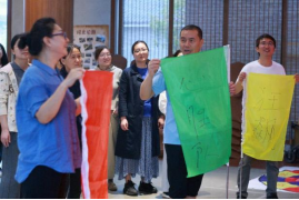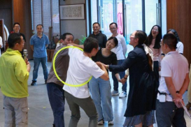 在一圈到底、水到渠成、同心鼓、毛毛虫、多人多足等游戏活动中,老师们团结协作,尽情投入,体会游戏带来的轻松快乐。