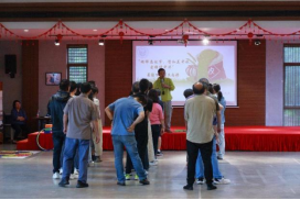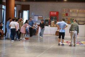 健康走后来到园区大厅开展集体活动。在主持人的引领下,老师们磨拳擦掌、跃跃欲试,期待分组团建游戏活动。