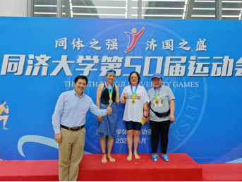 教师发挥出色,邹红艳老师蝉联女子46岁以上组50米蛙泳冠军,王俊凯老师获得男子35岁及以下组50米蛙泳亚军。