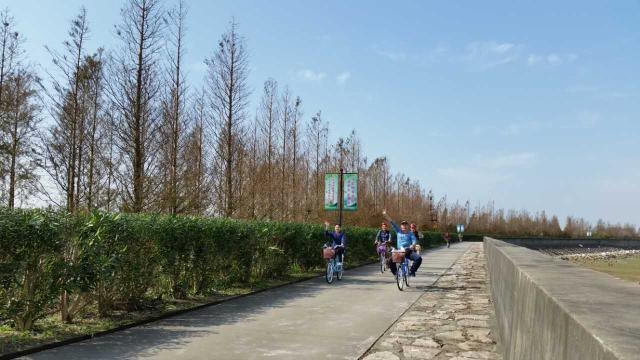 50多位教工、家属,来到恬淡,静阔小岛,繁华大都市上海的后花园——横沙岛,开展绿色行——自行车游横沙岛。