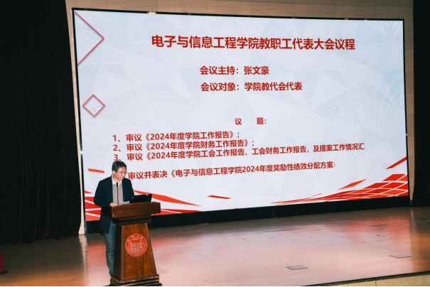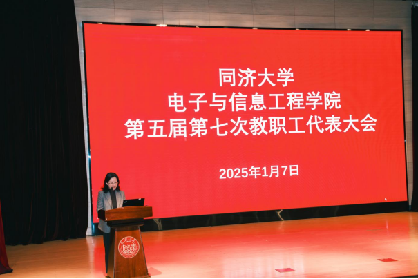 电子与信息工程学院第五届第七次教职工代表大会在嘉定校区济人楼101报告厅成功召开。会议由学院工会副主席张文豪主持。