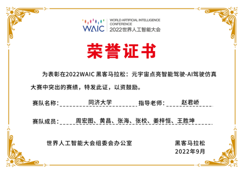 “途灵TiEV”参赛队伍由赵君峤副教授作为指导老师,周宏图博士作为队长,五名硕士研究生黄昌 、张海 、张校、姜梓恒、王胜坤为队员组成。比赛任务由复杂城市道路中常见的驾驶场景组成,包括超车、红绿灯路口、避让非机动车、无保护左转、路口通行博弈、行人横穿马路等任务。参与本次比赛的无人驾驶决策规划算法完全由“途灵TiEV”无人驾驶团队自主研发。未来,“途灵TiEV”无人驾驶团队将继续在无人驾驶前沿研究领域深耕,推动无人驾驶技术的进一步发展。(文/叶晨 图/赵君峤)