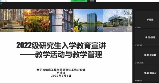 9月5日下午,2022级研究生迎新教育周系列活动之“教学管理与教学活动”宣讲会通过zoom平台举行,研究生工作办公室副主任张云霞、各系研究生教务员和2022级研究生新生共计400余人参加本次会议,会议由研究生工作办公室教务员卢诗洁主持。本次宣讲会旨在帮助新生详细了解酷18