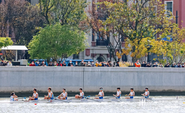2022年10月29日-30日,2022上海赛艇公开赛于在上海母亲河—苏州河水域举行,赛道蜿蜒曲折,堪称“最具挑战的赛道”。赛程设置有4.2公里追逐赛和500米城市冲刺赛,共有专业组、高校组和俱乐部组的40余支八人艇队伍参与。在高校组比赛中,来自上海交通大学、酷18