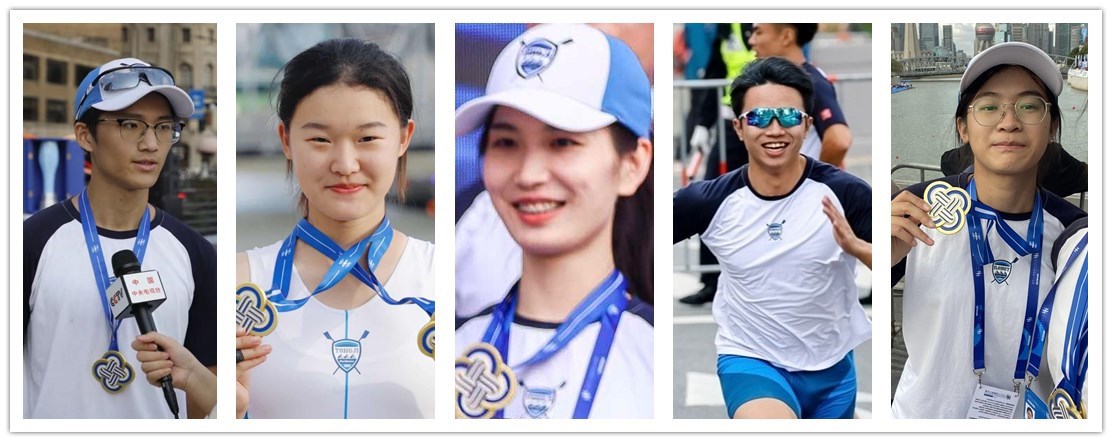 有5名学生作为队员参与本次比赛:2019级自动化专业本科生赵元德任混合八人单桨的8号位桨手,2020级计算机科学与技术专业本科生刘昱彤任混合八人单桨的6号位桨手、2021级信息与通信工程专业硕士研究生梅译丹任混合八人单桨的2号位桨手,2021级控制科学与工程专业博士研究生李成希任男子八人单桨的4号位桨手,2020级信息安全专业本科生蒋思齐任混合八人单桨的替补桨手,他们顽强拼搏,奋勇争先,展现了电信学子的精神风貌,帮助团队获佳绩。