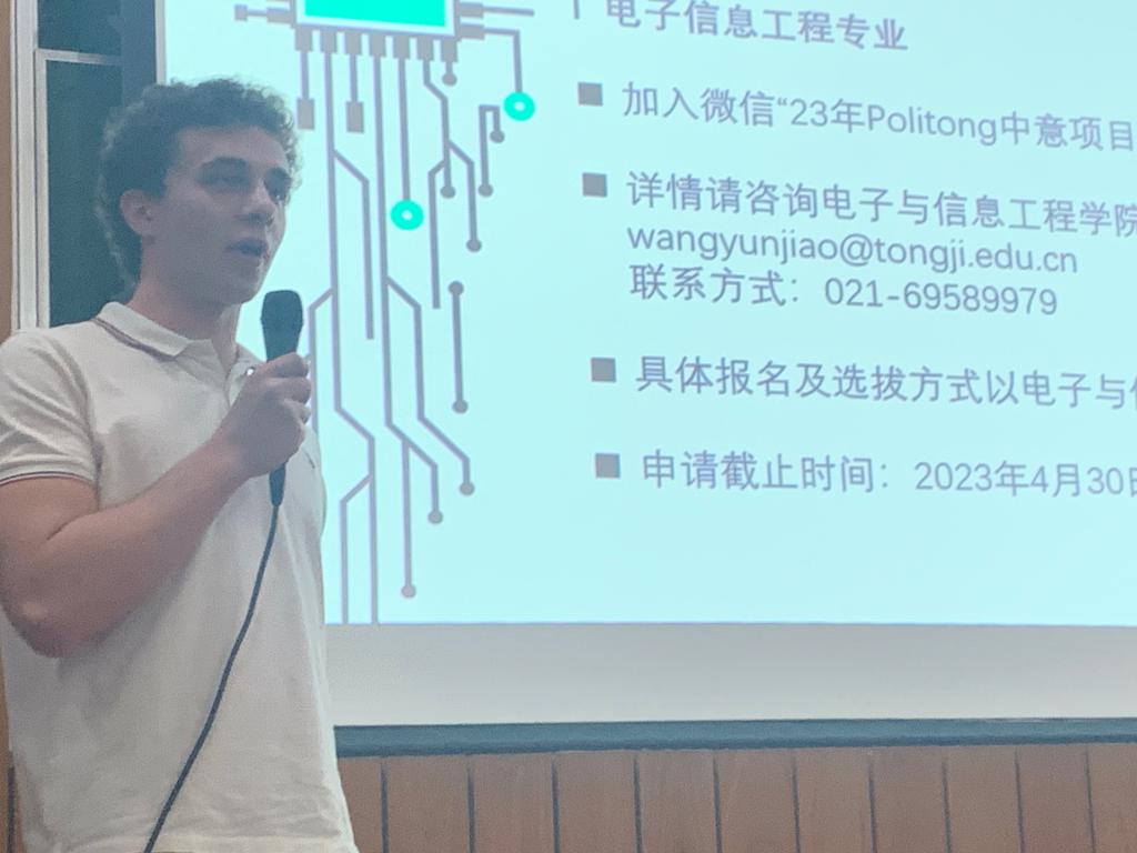 Politong项目电子信息工程专业毕业校友王文泽、都灵理工大学意大利交流生Gianmarco先后分享了项目学习经验,鼓励大家抓住机遇,应对挑战。最后,来自中意、机械及酷18
