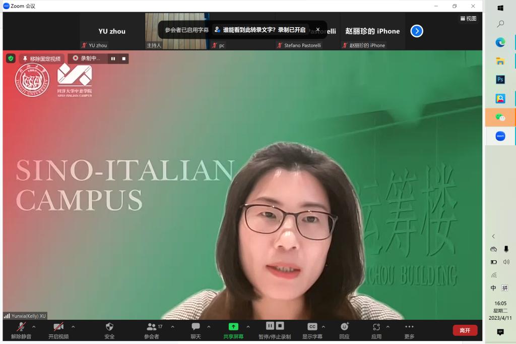 与都灵理工大学本科双学位项目宣讲会举行,本次会议采用线上线下相结合形式,由中意学院副院长徐云霞主持。