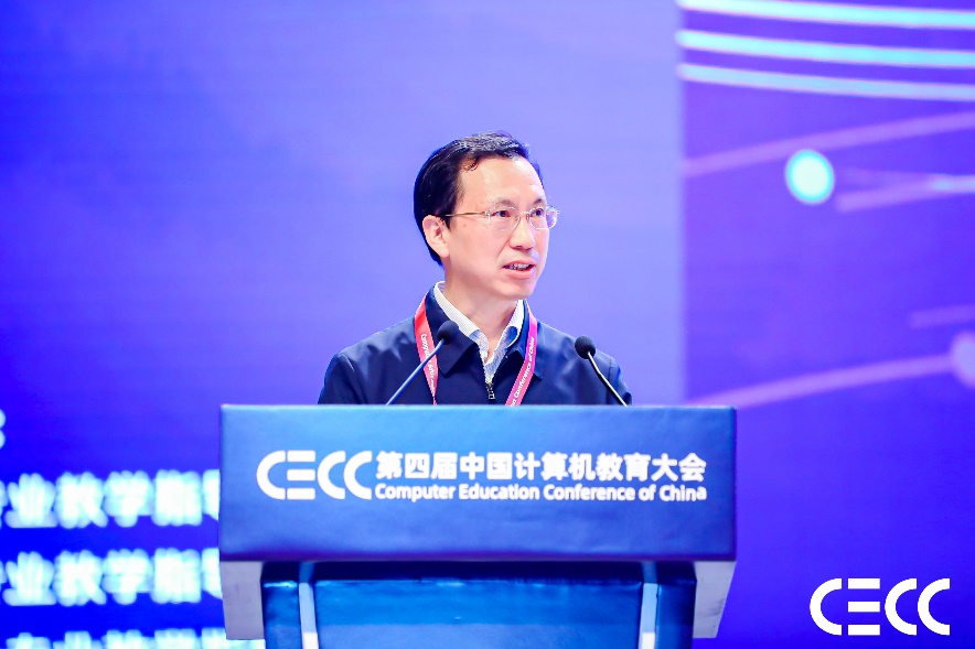 计算机科学与技术系教师秦国锋入选教育部-华为“智能基座”优秀教师奖励计划,同时获得中国计算机教育大会计算机类教学资源建设优秀教学案例特等奖。郑庆华校长在颁奖仪式上发表讲话,鼓励更多教师投入到计算机教育教学中来,为我国计算机关键根技术的人才培养作出贡献。( 图引自中国计算机教育大会)