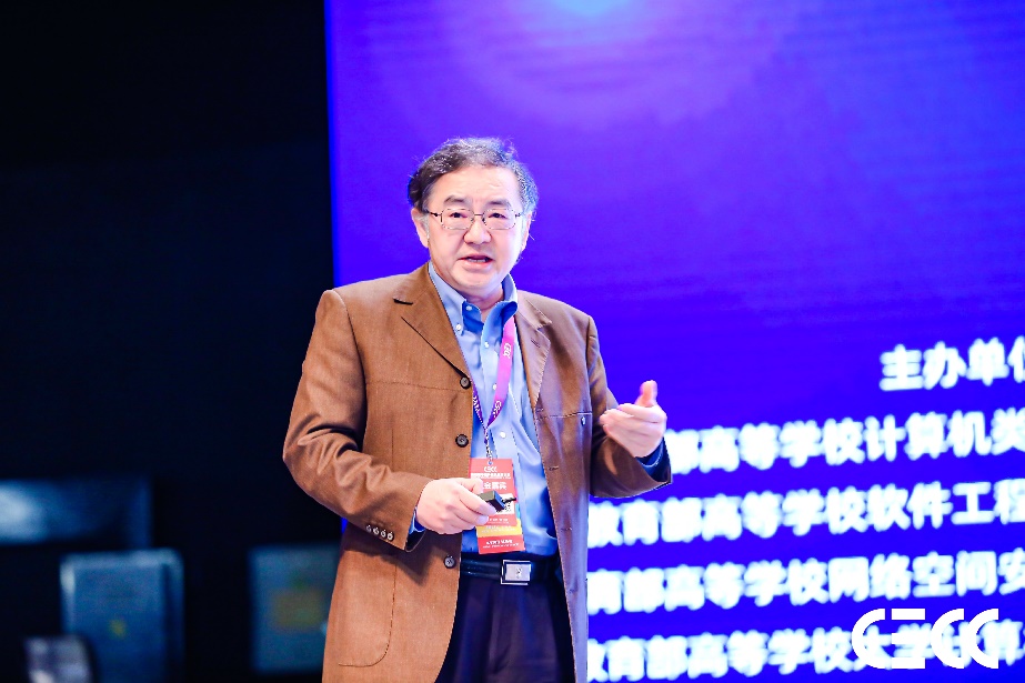 会议由大会共同主席、教育部高等学校大学计算机课程教学指导委员会主任委员、我校校长郑庆华教授主持。中国工程院院士、教育部高等学校计算机类专业教学指导委员会委员、我校蒋昌俊教授应邀作了“数字时代计算机拔尖人才培养的‘一体两翼双引擎’模式”的大会主题报告,紧密结合酷18