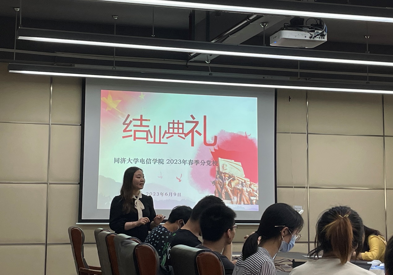 在嘉定校区智信馆305室举办了2023年春季党校积极分子和发展对象培训班结业典礼。学生党委副书记刘永焕和本期党校学员参加会议,学院党委组织员孙世琳主持会议。