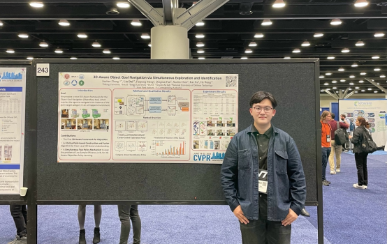 计算机科学与技术专业的2020级本科生戴浏参会并在会上作了题为“3D-Aware Object Goal Navigation via Simultaneous Exploration and Identification”的海报交流,该工作由戴浏作为共同第一作者与来自北京大学、华中科技大学、腾讯人工智能实验室等机构的研究者合作完成。该篇工作提出了业内第一个具备三维感知能力的物体目标导航算法,由两个精心设计的“角落目标探索策略”和“类别相关确认策略”共同驱动,实现了当前室内物体目标导航领域内的最高性能,受到了与会专家学者的关注。