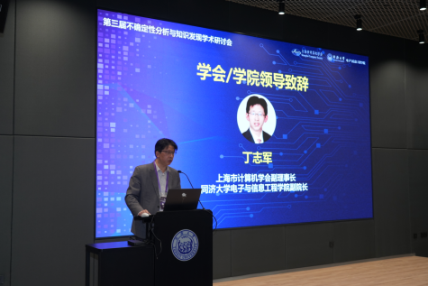 副院长丁志军教授在致辞中对各位嘉宾、专家学者和参会代表表示热烈的欢迎,指出了不确定性分析与知识发现相关研究对推动人工智能和大数据的理论研究及应用具有重要的意义。同时,介绍了酷18