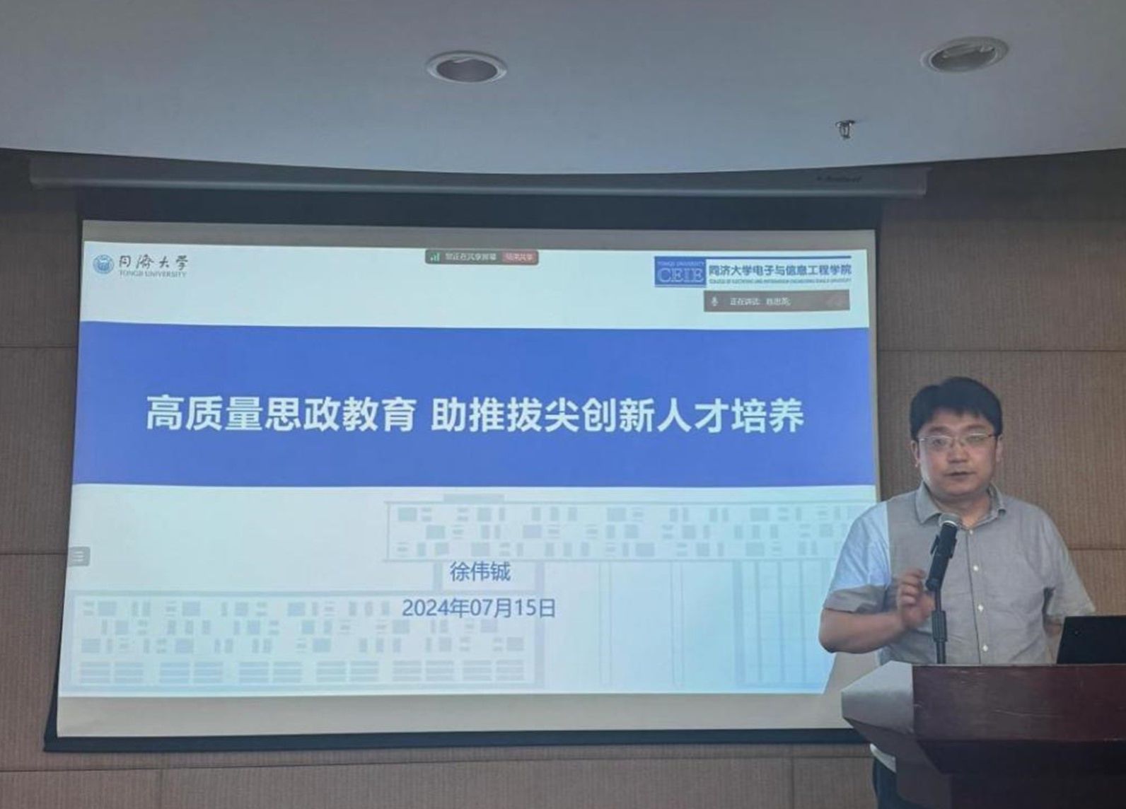 党委副书记徐伟铖以新时代人才培养的要求为切入点,以“高质量思政教育,助推拔尖创新人才培养”为题,明确阐述“培养什么人、为谁培养人”这一根本性问题,强调在新时代背景下自主培养拔尖创新人才的重要性,并提出通过高质量思政教育强化培养成效的专业路径。徐伟铖总结了学院师生概况和近两年学生工作成果,并就心理健康、学业学风、班主任管理等方面存在的问题,提出针对性改进措施。他强调,要坚持以问题、需求、目标和效果为导向,以高质量思政教育助推学院拔尖创新人才培养。