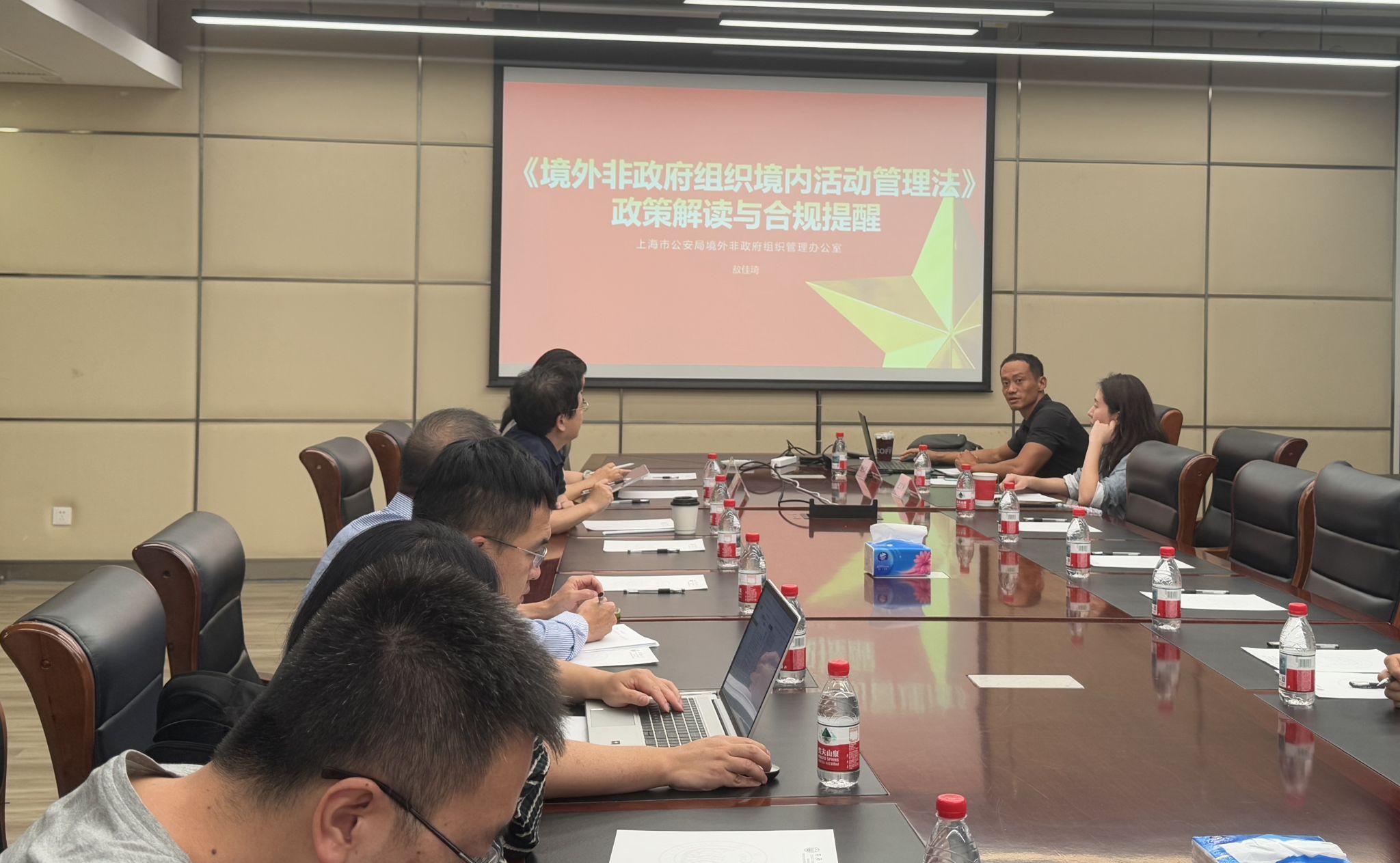 在智信馆305室举行国际会议工作宣讲会暨国际会议NGO备案宣贯会。上海市公安局境外非政府组织管理办公室(以下简称“非管办”)敖佳琦科长和学校外事办公室项目协调员史文彬受邀出席,分别作题为“《境外非政府组织境内活动管理法》政策解读与合规提醒”和“国际会议工作宣讲会”的主题报告。会议由学院副院长张皓主持,各系(中心)相关负责人和学院相关教师参加。