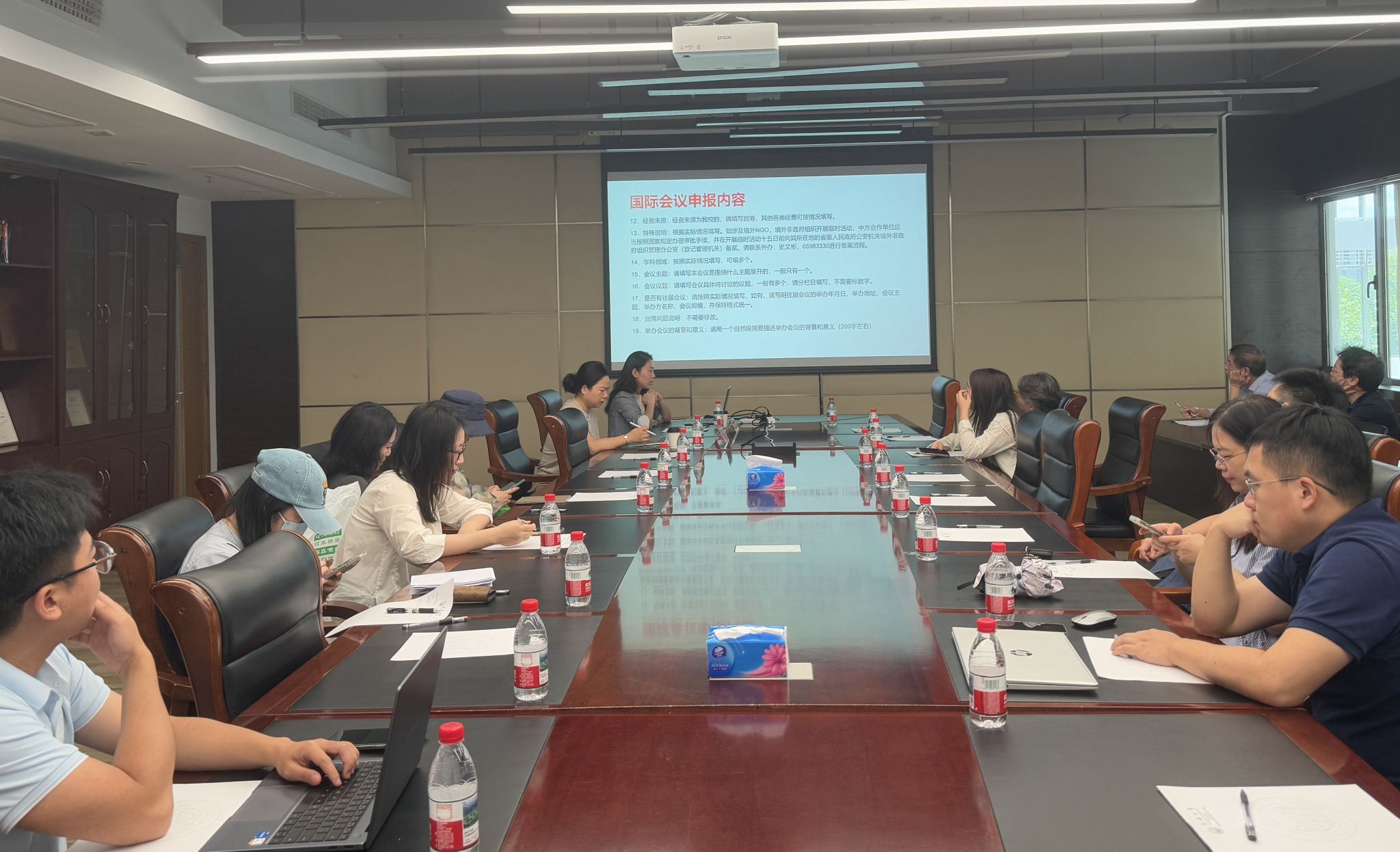 外事办公室史文彬老师从2024年国际会议总结、国际会议预报、国际会议申报、国际会议规定等方面详细介绍了国际会议申报流程。敖佳琦科长从背景、案例分析、政策宣传和备案措施等方面详细介绍了境外非政府组织在上海开展国际会议的备案流程。