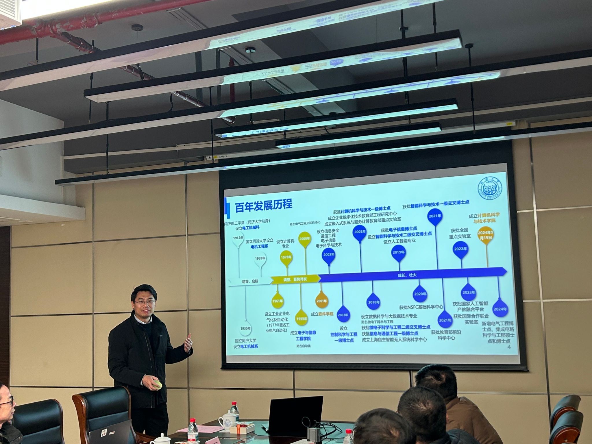 会上,黄新林副院长详细介绍了学院的历史沿革、学科优势、人才培养体系以及近年来取得的标志性科研成果。王超主任围绕信通系内各研究团队的重点学术方向和核心技术优势进行了系统性汇报。上海6G信通智谷相关负责人详细介绍了松江区在6G领域的战略布局、产业规划及园区建设情况。肖扬主任从空天地一体化、通感算一体、“6G+AI”深度融合三个方向,阐述了学院专家与松江6G产业园区合作的潜力和方向。他表示,园区不仅为各位专家提供一流的硬件设施和物理空间,更致力于构建一个集“研发、中试、生产、应用”于一体的全链条产业生态,并诚挚邀请各位专家莅临指导。