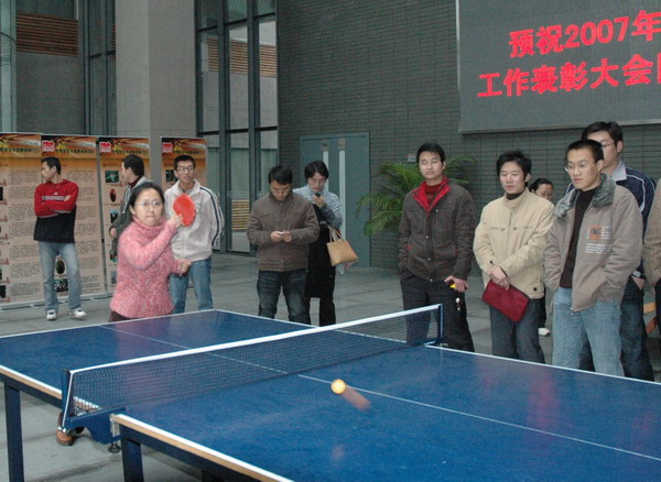 第一届教工乒乓球团体赛决赛阶段比赛及颁奖仪式在嘉定校区学院大楼大厅举行。标志着酷18