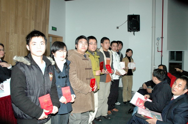 会上,还分别对该院2007年度“优秀班主任”、“优秀科技园丁”、“优秀学生党员”、“优秀党务工作者”、“先进党支部”、“学生科技明星”、“先进集体标兵”、“优良学风班”和“优秀学生干部”进行了表彰。06电子信息科学类1班班主任陆有军作为优秀班主任代表,与大家分享了班主任工作的心得。