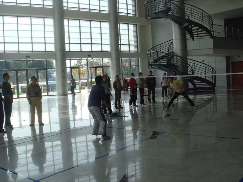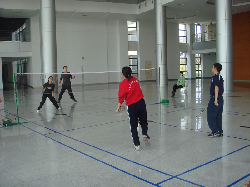 11月24日下午,在嘉定校区汽展中心大厅。电信学院羽毛球队与嘉定校区管委会羽毛球队举办了团体对抗赛。比赛进行了男女单打、男女双打、混合双打5个项目,嘉定校区管委会羽毛球队以3:2战胜酷18