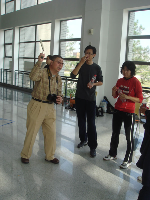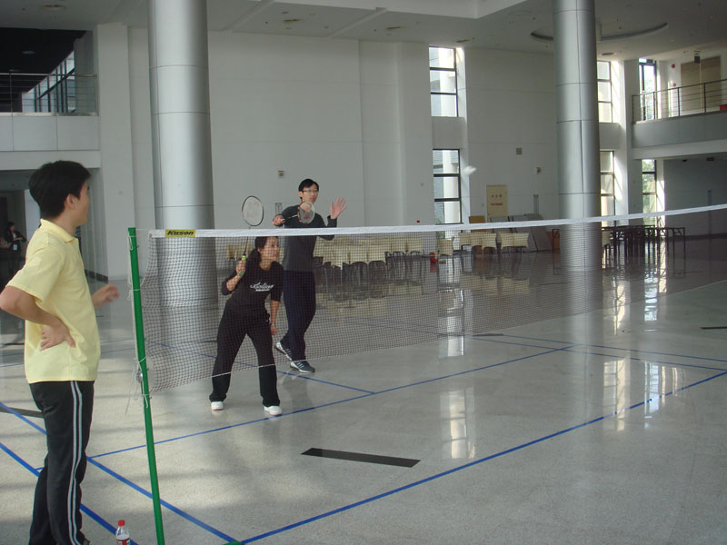 羽毛球队成员王从军、叶晨、王翠霞、贾晴、吴琼等分别参加5个项目的比赛。嘉定校区管委会两位副主任到场观看了比赛,比赛在热烈友好气氛中进行,赛后双方队员进行交流,切磋球技。(刘 峰)
