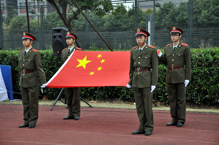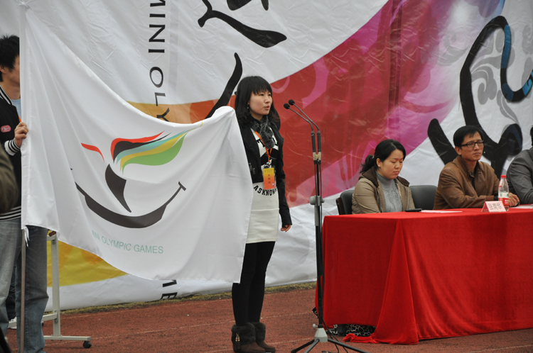 开幕式上,由国防生组成的国旗护卫队护卫国旗庄严入场。校团委书记杨元飞和校体育教学部邹凝祥共同揭幕了本届迷你奥运会会徽和吉祥物;嘉定校区管委办主任柳剑雄向酷18