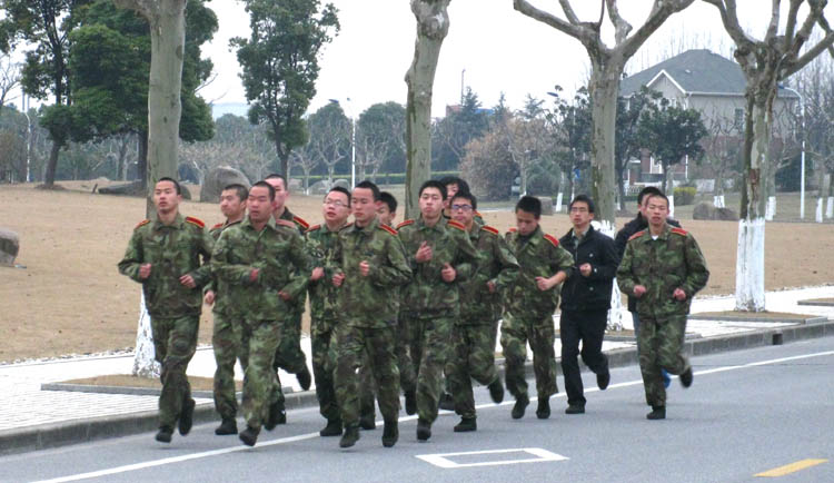 活动首先从日常训练体验开始。早晨6点5分,支部全体党员与国防生首先绕嘉定校区校园晨跑一圈。早起床、长距离晨跑对于已进入毕业设计阶段、没有课程学习任务且平时不常锻炼的毕业班同学来说着实是一项挑战,但他们都凭着自己的毅力坚持到了最后。
