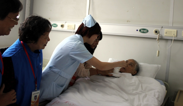 在沪东老年护理院,志愿者在护理人员的指导与帮助下,有的为视力不好的老人们读报,让他们了解时下的新闻;有的与老人拉家常,聆听老一辈年轻时的辉煌;有的为行动不便的老人们喂水喝;还有的跟着老人们一起搭积木、练写字板。看到老人们一个个都露出了笑脸,不禁让每个志愿者感叹夕阳也有其独特的魅力所在。(程 莉 张蓓雯)