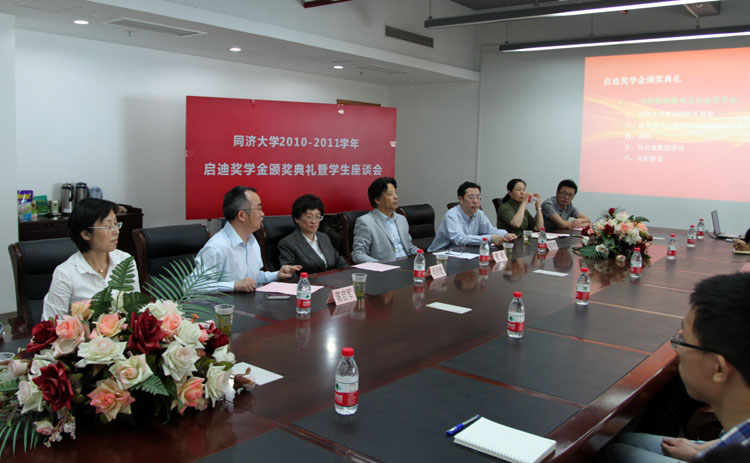 副校长董琦,电信学院党委书记童学锋、院长陈启军、副院长乔非、党委副书记董变林及学校基金会负责人出席了颁奖仪式。颁奖仪式由电信息学院院长陈启军主持,吴启迪教授亲自为09级自动化刘士尧、09级计算机科学与技术俞丁胜、09级电子信息工程任毅3位同学颁奖。