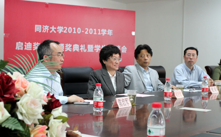 吴启迪教授在颁奖仪式上的讲话中指出,启迪奖学金的设立是为了鼓励同学们参加科技创新项目,增强专业动手实践能力。她并结合自己的亲身经历,希望同学们能够踏踏实实做人、做事,脚踏实地学好本领,注重人格培养。她说科学家和工程师的区别,在于科学家是发现客观规律,而工程师则是不断在创新,不断推动着社会的进步,因此也希望同学们能够秉着创新的精神,不断进取,勇攀高峰,为社会做出贡献。