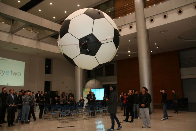 会上,参与该项目的两校学生向大家展示了为期三个月的设计成果――一个自主研制的可自主控制的智能气球机器人Skye,该机器人由迪斯尼公司资助,可连续飞行。与瑞士苏黎世联邦理工学院的学生联合创新设计项目始于2011年,由酷18