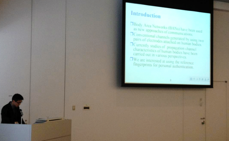 电子科学与技术系2009级本科生陈佳静同学受邀参加在日本东京举办的以“Towards Better Personalized Medicine and Healthcare”为主题的国际学术会议“7th International Symposium on Medical Information and Communication Technology ”(ISMICT)。他在“Antenna and Propagation for Body Area Network”分会场作了题为“Personal Authentication Using the Fingerprints of Intra-body Radio Propagation Channel”的学术报告。