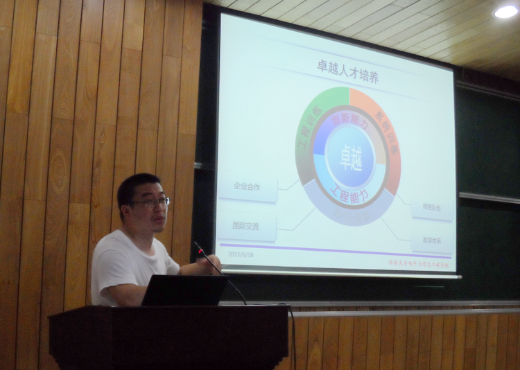 2012-2013学年第四次电信学院教学论坛于6月18日下午在电信大楼一楼报告厅举行。学院两百余位教职员工参加了本次论坛,论坛由学院党委副书记兼副院长乔非主持。此次论坛包含实验教学规范管理、学院卓越教学改革项目及核心课程经验交流等内容。