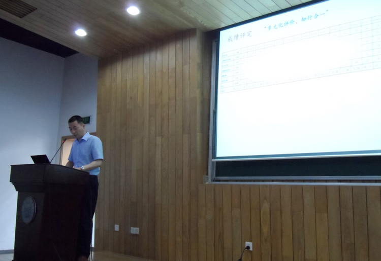 青年教师讲课竞赛一等奖得主徐尚志老师做了精彩报告。他与在座教师从备课、上课方法、与学生交流的方式、辅导及考核等方面分享了自己步入教师职业生涯来的成长历程和多年来的教学体会及心得。
