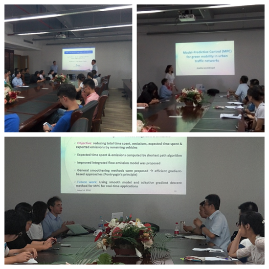 随行Ana Jamshidnejad博士作了题为“Multi-objective model-predictive control with endpoint penalties for reduction of congestion and emissions”的学术报告,介绍了一种模型预测控制器,以集成溢流排放模型为核心,以寻找减少拥塞和排放量之间的平衡。