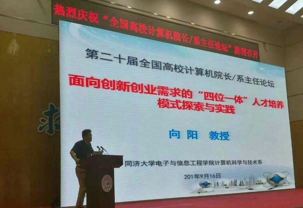 党委副书记向阳、计算机科学与技术系主任丁志军、副主任何良华、系总支副书记张亚英以及系主任教学助理赵才荣应邀出席。向阳教授作了题为《面向创新创业需求的“四位一体”人才培养模式探索与实践》的大会报告。