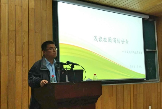 校保卫处贾晓航老师为大家作了题为“浅谈校园消防安全--火灾预防与应急处置”的报告,他通过展示近年来高校几起触目惊心的火灾案例,深入浅出向师生讲解了造成火灾的原因、火灾的预防、火情的应急处理方法。