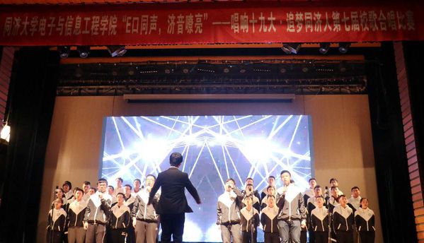 团委举办的第七届“E口同声·济音嘹亮”校歌合唱比赛在四平路校区129礼堂隆重举行。学院党委副书记董变林老师、500余名2017级新生和班主任共同出席合唱比赛。