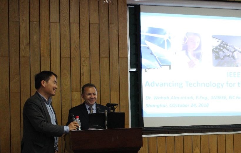 签约仪式上,陈启军院长代表学院对合作双方表示了欢迎和祝贺,并希望本项科研合作能够促进人工智能学科发展和国际化高端人才交流。上海市人工智能学会理事长张浩教授和IEEE消费电子学会会长Sharon Peng博士签署了合作备忘录。Wahab Almuhtadi博士介绍了IEEE 消费电子学会。袁昱博士则为师生讲解了了IEEE标准制定及应用过程。Sharon Peng博士介绍了IEEE未来发展方向及人工智能技术在消费电子的应用前景。