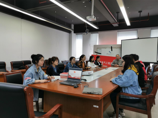 2019年10月23日中午12:30,电气信通联合总支研究生第二党支部于电信楼384室开展了主题教育推进工作,电气信通联合总支书记金立军老师联系研究生支部,参加了本次的主题教育推进工作,第二党支部所有党员及入党积极分子出席了会议,会议由电气信通联合总支研究生第二党支部书记陆坡燕同志主持。会上,金老师以三个主题讲了党课,分别为: 《习近平总书记在2019年秋季学期中央党校(国家行政学院)中青年干部培训班开班式上的重要讲话》、《贯彻落实习近平新时代中国特色社会主义思想在改革发展稳定中攻坚克难案例提要》以及《与祖国同行以科教济世开启建设中国特色世界一流大学新征程》(酷18
