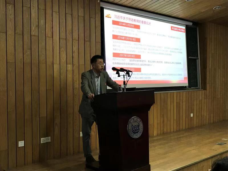 向书记的党课主题是:不忘初心、牢记使命——聚焦问题、改进工作。专题党课紧密结合学院领导班子学习和调研成果,从四个方面展开:一是开展主题教育的重要意义及总体要求;二是解读习近平关于思政教育的重要论述;三是深入调研,聚焦问题;四是真抓实干,改进工作。向阳书记分享了个人对初心和使命的感悟,重点讲了自己对习近平总书记关于教育重要论述的学习体会和收获,详细分析了通过班子成员的全方位调研发现学院目前存在的差距和不足,并将学院领导班子多次研讨拟定的改进工作的思路和措施做了汇报。党课内容详实丰富,又结合学院实际,真正按照 “不忘初心、牢记使命”主题教育的“守初心、担使命、找差距、抓落实”总体要求将学院党委的各项工作落到实处。