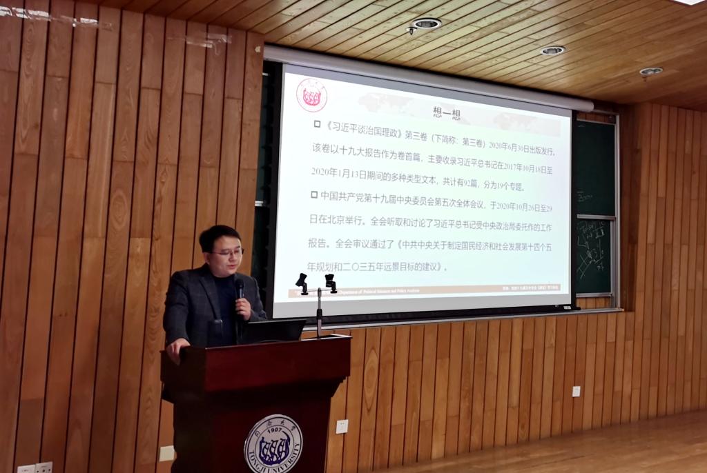 2020年11月12日下午,学院邀请马克思主义学院的刘骞副教授在智信馆117报告厅开展题为《新时代背景下建设中国特色社会主义的战略目标和内容》的党员新视野专题党课,带领学生党员和入党积极分子进行《习近平谈治国理政》第三卷的开卷学习,引导大家通过读原著、学原文、悟原理,努力做到学、思、用贯通,知、信、行统一。专题党课由学院党委副书记张南华老师主持,计算机联合党总支副书记张砚秋、学生党总支副书记刘永焕、学院全体辅导员、学生党员以及入党积极分子150余人参加。