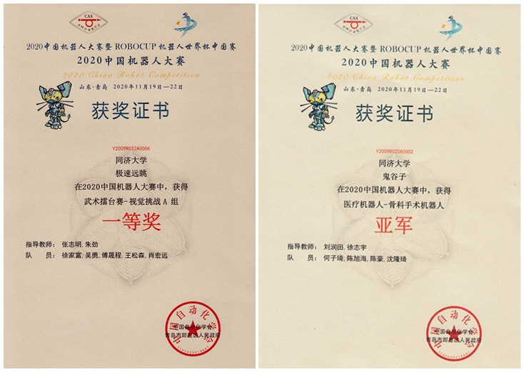 教师张志明、朱劲和刘润田带队最终成行参赛。其中:由控制科学与工程系张志明老师、朱劲老师和余有灵老师指导,全国大学生智能汽车竞赛实验室成员组成四支队伍,分别参加“武术擂台赛-视觉挑战A组”、“武术擂台赛-体感仿人格斗”、“助老服务机器人-助老环境与安全服务”、 “助老服务机器人-助老生活服务”等项目,经过小组赛、淘汰赛等多轮角逐后,表现出色,获得三项一等奖(含1项亚军)和一项优胜奖;由实验中心刘润田老师和徐志宇老师指导的一支队伍,参加“医疗机器人-骨科手术机器人”项目,成绩优异,获得一项亚军。