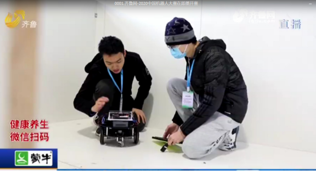 值得一提的是,智信环境安全队在比赛期间由于表现优异,吸引了众多媒体工作人员前来观战,刘昊和赵文瑞同学作为代表接受采访。在11月20日晚上播出的中央电视台1套晚间新闻节目中,所播放的中国机器人大赛新闻多个画面中都出现了我代表队所制作的服务机器人和比赛实况场景;在11月21日的山东电视台齐鲁新闻节目中,有更详细的采访内容和画面,包括酷18