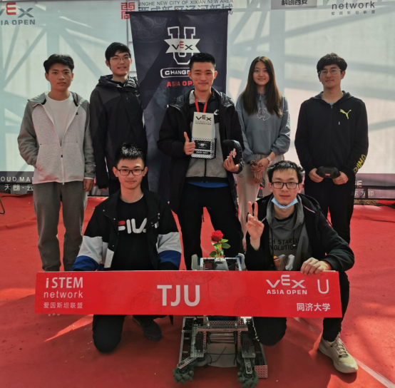 由刘子牛(软件工程)、沈陆(自动化)、王佳艺(人工智能)、宣思诚(自动化)、田海文(微电子)、徐铭骋(计算机科学与技术)6位2019级本科生组成的TJU队,参加了VEX U类别比赛。比赛规则为赛队的两个机器人在15秒自动赛时段和1分45秒手动控制时段相互配合,通过用球得分和达成纵横来获得分数。在领队老师江楠的指导下,同学们分工明确,配合默契,全程动手设计、搭建和调试,展现了同济人追求卓越、严谨务实的风采。