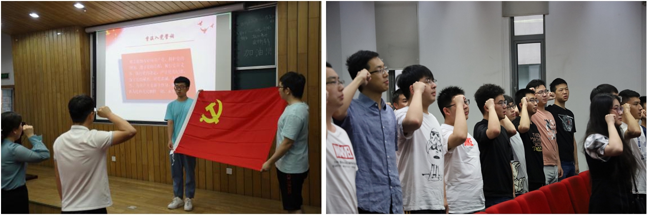 在领誓人博士生第十二支部书记郑永飞的带领下,与会党员重温入党誓词,面向党旗庄严宣誓:“我志愿加入中国共产党,拥护党的纲领,遵守党的章程,履行党员义务,执行党的决定……”,铿锵的誓言传达出身为共产党员的自豪感和使命感,展示了酷18