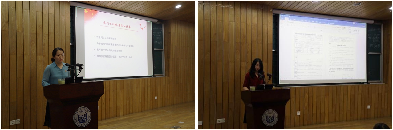 毕业生党员代表胡德央和陈适宜分别发言。他们代表全体毕业生党员深深感谢学院和各位老师的栽培,并表示在未来的工作中,将以优秀党员的标准严格要求自己,努力学习,扎实工作,争取更大的成绩。