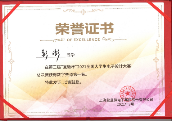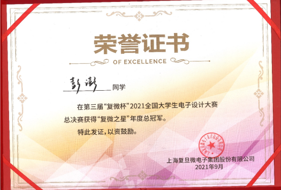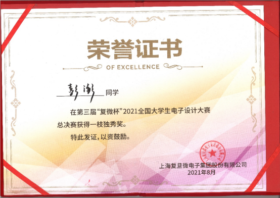 “复微杯”是一项大学生科技竞赛活动,该竞赛聚焦于微电子细分领域,赛题内容紧贴学界研究前沿与业界真实需求,专业性强、挑战性大。竞赛目的在于加强对大学生动手能力的培养和工程实践的训练,提高学生针对实际问题进行电子设计、制作的综合能力,培养大学生的创新能力、协作精神;吸引、鼓励广大学生踊跃参加课外科技活动,为优秀人才服务社会发展创造条件。彭澎同学本硕博均就读于酷18