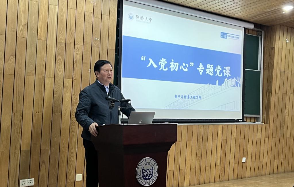 在“入党初心”专题党课上,金正基以 “为什么要入党?”“怎么体现优秀的共产党员?”开题,以自己的入党初心为例,讲述中国共产党全心全意为人民服务的宗旨。金正基老师表示:“我们党是有自己的政治信仰的,自己加入中国共产党感到无比的光荣。解放时期的优秀共产党员不怕死,新中国成立初期的优秀共产党员不怕苦,改革开放时期的优秀共产党员不怕错。未来的30年是你们青年人的,你们建设和见证第二个百年的全过程,作为新时代的优秀共产党员,你们怎么展现自身的优秀素质?我认为你们这一代有你们的幸福元素,有强国的基础,也有社会主义制度的优越,但是难题很多。未来的你们,作为优秀的共产党员要有第四个不怕,那就是不怕难。新一代的青年要有克服困难的准备,全心全意为人民服务的思想准备,服从组织安排,时刻准备应对新的挑战。”