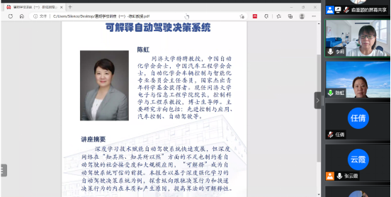 举办的第十一届全国优秀大学生暑期学校系列讲座在云端开讲。院长陈虹教授应邀开讲,做了题为“可解释性自动驾驶决策系统”的主题报告。